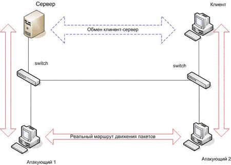 одному свичу), а Attacker2 "ближе" к серверу. В такой ситуации