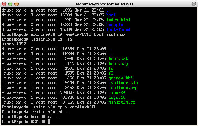 [root@xpoda archimed]# cp -r /media/dsl-loop/* /media/DSFL