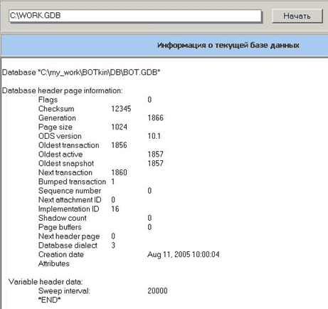 Статистика базы данных InterBase/FireBird, полученная через gstat или