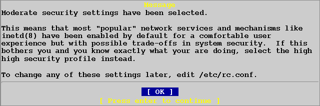 Если вы не знаете какой выбрать уровень безопасности, выбирите medium [по умолчанию]. Выбирите [OK] и нажмите ENTER.