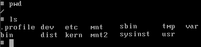 Например, запуск оболочки командного интерпретатора /bin/sh. На следующем рисунке мы можем видеть результат выполнения команд pwd и ls. Нам предоставлена самая обычная оболочка, с помощью которой можно поработать внутри запущенной сейчас системы и подправить все, что нужно, если вдруг что-то пойдет не так. Выйти из оболочки можно, как обычно, нажав Ctrl+D