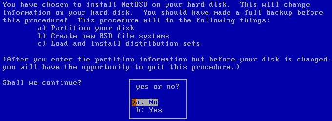 Обсудив все плюсы NetBSD, перейдем от теории к практике. Ну а чтобы у вас не сложилось впечатления о предвзятом и однобоком освещении системы, я в процессе установки обязательно буду говорить о замеченных недостатках.