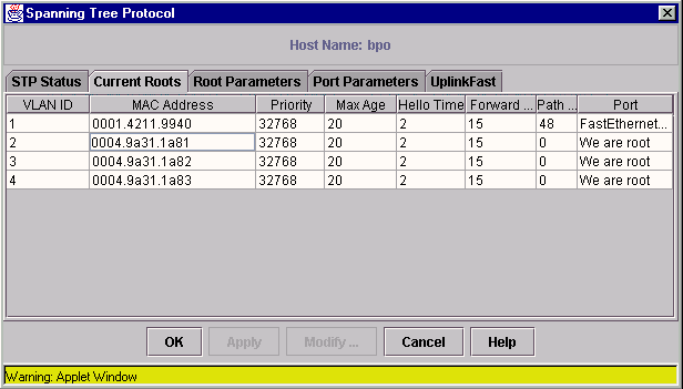 | Hello Time | Число секунд(1-10) между передачей сообщений другим свитчам о том, что данный работает. Этот параметр применяется для главного свитча. Для других этот параметр наследуется от главного. |