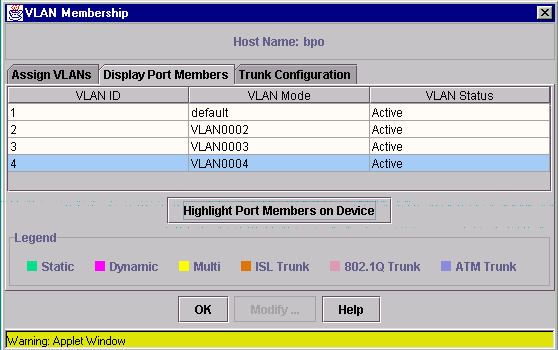 порта(статический или динамический) и спользуется меню Membership type - M: