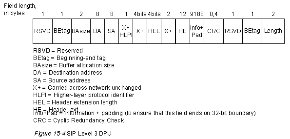 Поля на рисунке, помеченные знаком Х+, не используются средствами SMDS; они присутствуют в протоколе для того, чтобы обеспечить выравнивание формата SIP с форматом протокола DQDB. Значения, помещенные в этих полях оборудованием CPE, должны быть доставлены сетью в неизмененном виде.