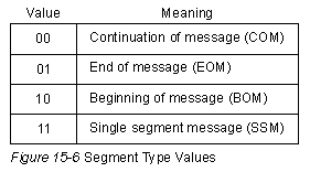 Поле "типа сегмента" (segment type) указывает, является ли данная PDU уровня 2 начальным, последним или каким-нибудь слотом из середины PDU уровня 3. Значения типов сегмента представлены на Рис. 15-6.