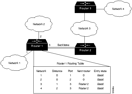 Протокол, который организует и поддерживает маршрутные таблицы AppleTalk, называется Протоколом поддержки маршрутной таблицы (RTMP). Маршрутные таблицы RTMP содержат данные о каждой сети, до которой может дойти дейтаграмма. В эти данные входит порт роутера, который ведет к сети пункта назначения, ID узла следующего роутера, который принимает данный пакет, расстояние до сети назначения, выраженное числом пересылок, и текущее состояние этих данных (хорошее, подозрительное или плохое). Периодический обмен маршрутными таблицами позволяет роутерам об'единенных сетей гарантировать обеспечение непротиворечивой текущей информацией. На Рис. 16-4 представлен образец таблицы RTMP и соответствующая архитектура сети.