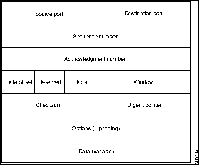 Transmission Control Protocol (TCP) обеспечивает полностью дублированные, с подтверждением и управлением потоком данных, услуги для протоколов высших уровней. Он перемещает данные в непрерывном неструктурированном потоке, в котором байты идентифицируются по номерам последовательностей. ТСР может также поддерживать многочисленные одновременные диалоги высших уровней. Формат пакета ТСР представлен на Рис. 18-8.