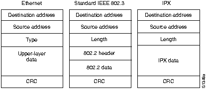 Хотя IPX и является производной XNS, он имеет несколько уникальных характеристик. С точки зрения маршрутизации , наиболее важное различие заключается в механизмах формирования пакетов данных этих двух протоколов. Формирование пакета данных - это процесс упаковки информации протокола высшего уровня и данных в блок данных. Блоки данных являются логическими группами информации, очень похожими на слова телефонного разговора. XNS использует стандартное формирование блока данных Ethernet, в то время как пакеты IPX формируются в блоки данных Ethernet Version 2.0 или IEEE 802.3 без информации IEEE 802.2, которая обычно сопровождает эти блоки данных. Рис.19-3 иллюстрирует формирование пакета данных Ethernet, стандарта IEEE 802.3 и IPX.