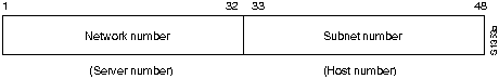 Адреса сетевого уровня VINES являются 48-битовыми об'ектами, подразделенными на сетевую (32 бита) и подсетевую (16 битов) части. Сетевой номер можно описать как номер какого-нибудь служебного устройства, т.к. он получается непосредственно из ключа (key) служебного устройства (аппаратного модуля, который обозначает уникальный номер и программные опции для данного служебного устройства). Подсетевая часть адреса VINES лучше всего описывается как номер хоста, т.к. он используется для обозначения хоста в сетех VINES. Рис. 21-2 иллюстрирует формат адреса VINES.