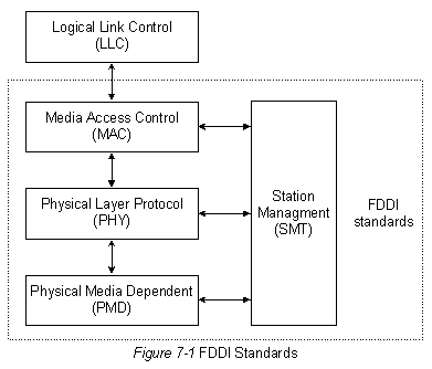 FDDI определяется 4-мя независимыми техническими условиями (смотри Рис. 7-1 "Стандарты FDDI"):