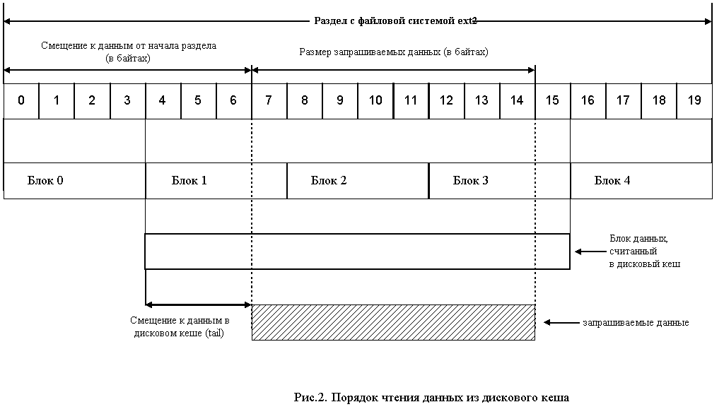 Для считывания (записи) данных с блочного устройства драйвер файловой системы обращается к подсистеме I/O. Одним из параметров, передаваемых подсистеме I/O, является старший номер устройства, для которого необходимо выполнить операцию считывания данных (записи данных). Используя старший номер в качестве индекса, подсистема I/O находит в ТБУ адрес функции-диспетчера соответствующего драйвера, и выполняет вызов данной функции, передав тем самым драйверу команду для выполнения, например, команду чтения. Функция-диспетчер драйвера принимает команду от подсистемы I/O, формирует запрос к устройству путем заполнения глобальной структуры ata_request, и вызывает функцию чтения с устройства. Считанные данные помещаются в буфер, адрес которого передается драйвером файловой системы через подсистему I/O. В случае, если поступила команда на запись, по этому адресу будут находяться данные, которые необходимо записать на устройство.