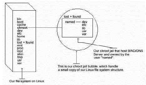 Сейчас мы должны определить chroot окружение и создавать корневой каталог для него. Мы выбрали каталог "/chroot/named", потому что хотим разместить ее на независимом разделе, чтобы предотвратить атаки на файловую систему. Раньше, во время инсталляции Linux мы создали раздел "/chroot" специально предназначенный для этого.