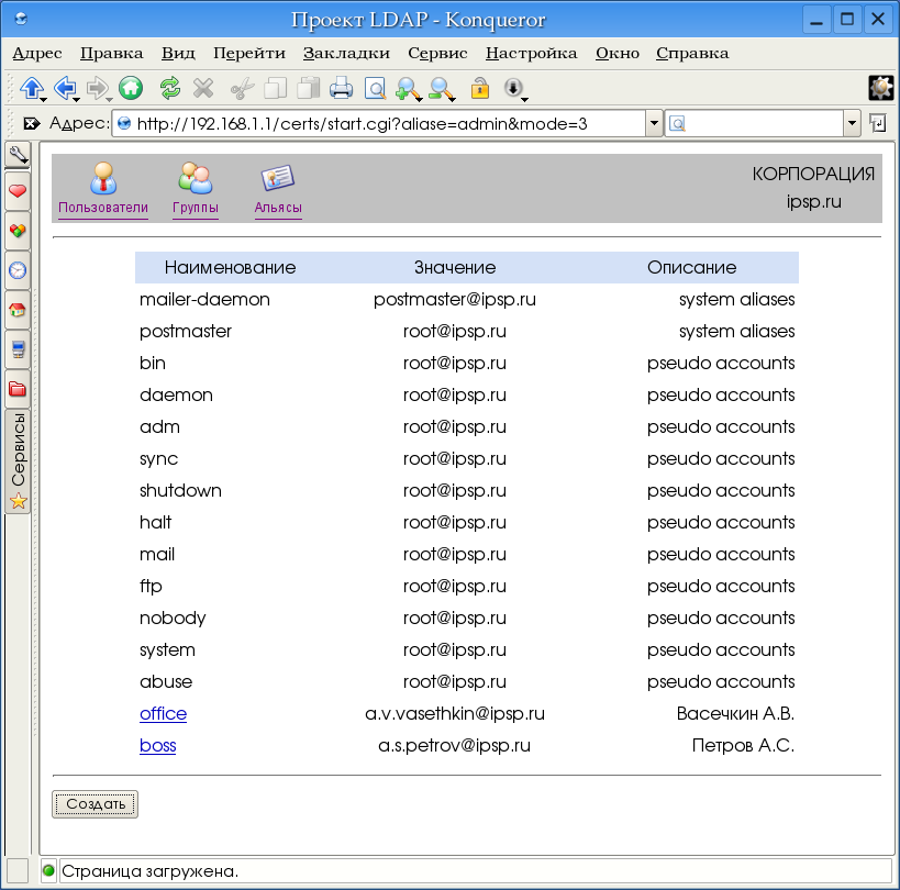 Я позволил себе написать (небольшой скрипт управления корпоративной почты) CGI сценарий, с помощью которого можно решать следующие задачи: