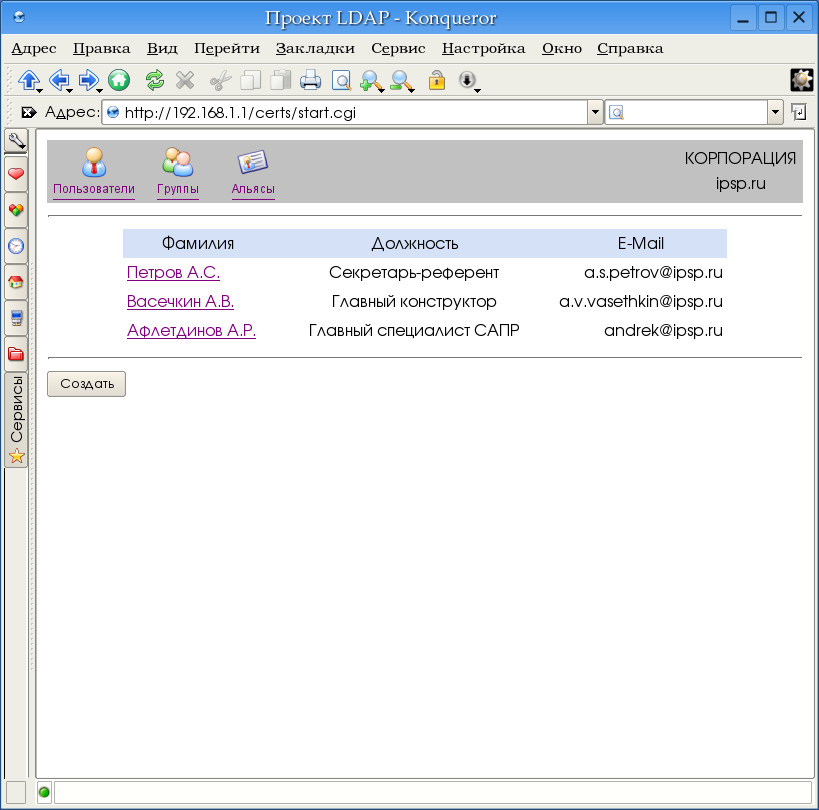 Централизованная адресная книга, и пользовательские сертификаты в каталогах LDAP.