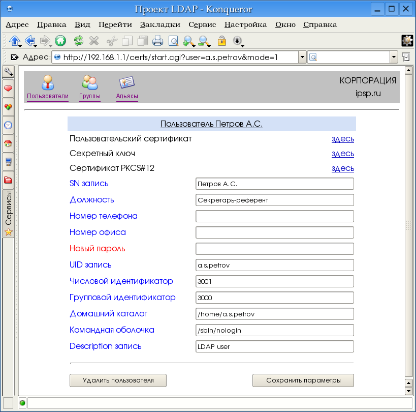 При добавлении пользователя, сертификаты автоматически добавляются в каталог LDAP.