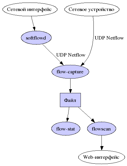- fprobe - NetFlow-сенсор для Linux, базирующийся на libpcap