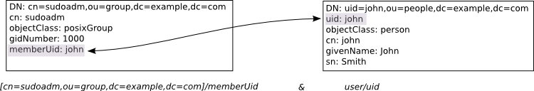 dn: cn=sudoadm,ou=group,dc=example,dc=com cn: sudoadm objectClass: posixGroup gidNumber: 1000 memberUid: john