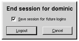 В момент завершения сеанса X11, некоторые оконные менеджеры выдают запрос на подтверждение завершения сеанса. Если мы подтверждаем завершение сессии, то приложения, которые работали в этот момент, будут автоматически запущены в начале следующего сеанса, с теми же экранными координатами и, в идеале, в том же самом состоянии.