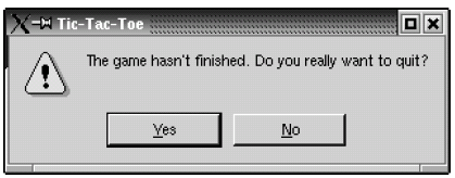 int ret = QMessageBox::warning(ticTacToe, tr("Tic-Tac-Toe"),