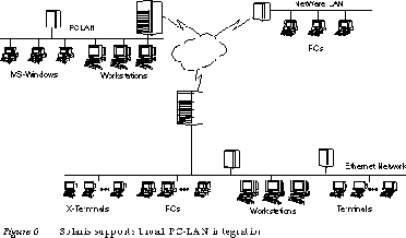 Кроме того, SolarNet PC-Admin предлагает поддержку X Window и взаимодействие с UNIX-приложениями, выполняющимися на удаленных системах (SolarNet PC-X), связь с Интернет, а также средства администрирования персональных компьютеров в рамках локальных сетей MS-Windows и NetWare с сервера, работающего под управлением Solaris.
