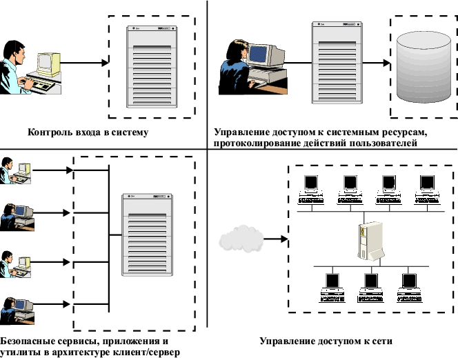 Средства безопасности Solaris обеспечивают следующие типы защиты: