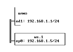 ifconfig ed1 inet 192.168.1.1 netmask 255.255.255.0На самом деле у нашего шлюза много интерфейсов и они будут конфигурироваться по мере надобности. Еще раз обращаю внимание на то, что номер и маска сети совпадают для всех машин этого сегмента.