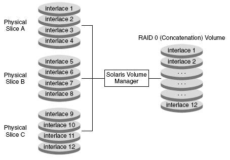 # metainit d20 -r c1t0d0s2 c2t0d0s2 c3t0d0s2