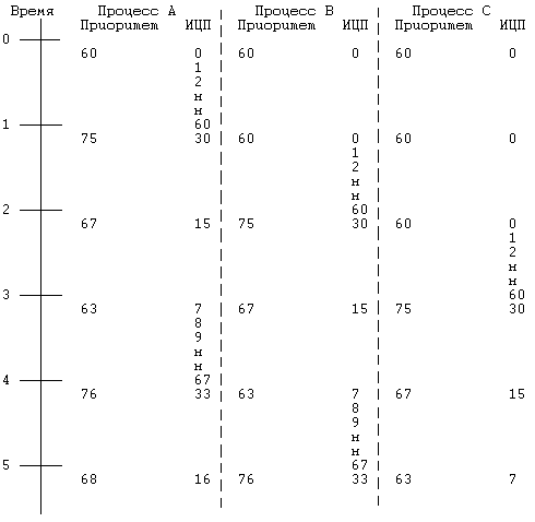 decay(ИЦП) = max (пороговый приоритет, ИЦП-10);