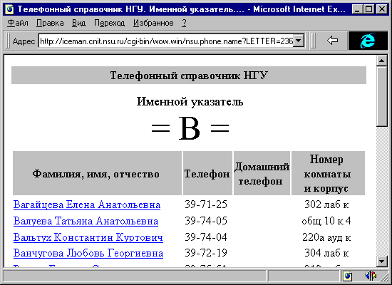 БД "Телефонный справочник НГУ" была создана в СУБД "Paradox4.5" и состоит из трех таблиц:SPIS.DB, STR.DB, PODR.DB.