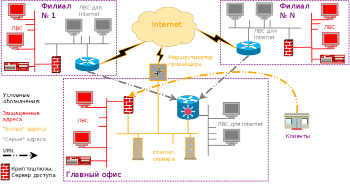 прозрачным файерволом - центральным маршрутизатором до сервера VPN.