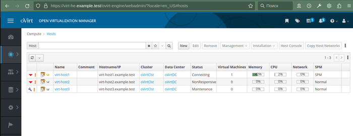 > oVirt состоит из двух основных компонентов - oVirt engine и oVirt node.